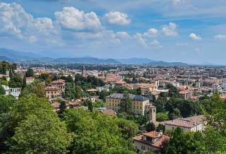Stuur de huurauto naar Bergamo. Het zal u ongeveer een uur kosten om de 55 kilometer af te leggen. Bergamo ligt aan de zuidelijke uitlopers van de Alpen. De machtige bergen vormen de charmante achtergrond van de stad.